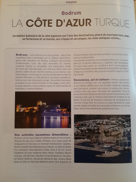 29 Eylül-02 Ekim 2015 tarihleri arasında düzenlenen Paris IFTM Top Resa fuarına katılan 1500'den fazla katılımcı, 31 bin metre karelik alanda kurulan Porte de Versailles fuar alanında buluştu. BOTAV Üyesi TAV Havalimanları Holding yetkilileri Serkan Karahatay ve Can Canbolat, Paris IFTM Top Resa fuarına Bodrum standında katılarak Transavia France, ASL Airlines (Europe Airpost), Aigle Azur, AZAL Havayolu Şirketleri ve Mondial Tourisme, TUI France, Salaun Holidays, Gestair, Turquoise Tours, FTI, FRAM, Jettours (Thomas Cook), Pacha Tours tur operatörleriyle görüşmeler yaptı. Fransa'da yayınlanan toplantı, seyahat ve magazin dergisi Tendance Nomad'da Türkiye'nin La Côte d'Azur'u olarak Bodrum'un tanıtımına yer verildi.