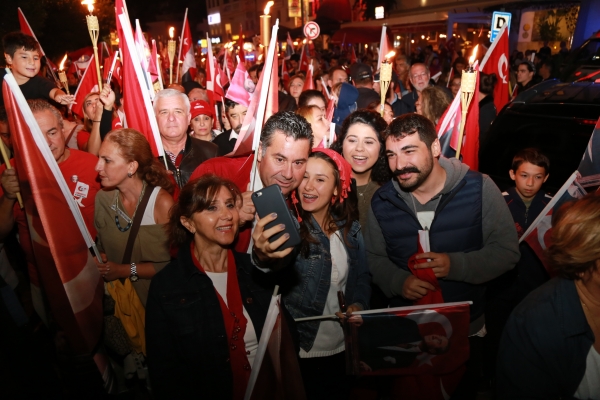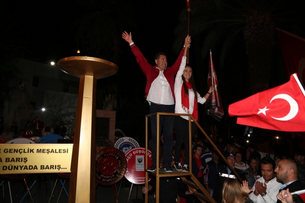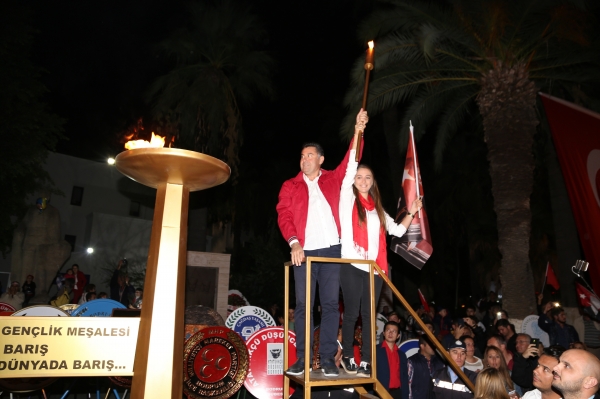 'Barış ve Gençlik Meşalesi'ni Gözde Keleş ile birlikte yaktıktan sonra tüm vatandaşların Cumhuriyet Bayramını kutlayan Bodrum Belediye Başkanı Mehmet Kocadon, "Sizler laik Türkiye Cumhuriyeti'nin son kalesisiniz. Sizlerin belediye başkanı olmaktan son derece gururluyum, mutluyum. Bu güzel bayram bütün dünyaya, Türkiye'ye kutlu olsun. Daima birlik ve beraberlik içinde kalalım, hepinize sevgi ve saygılarımı sunuyorum " dedi.