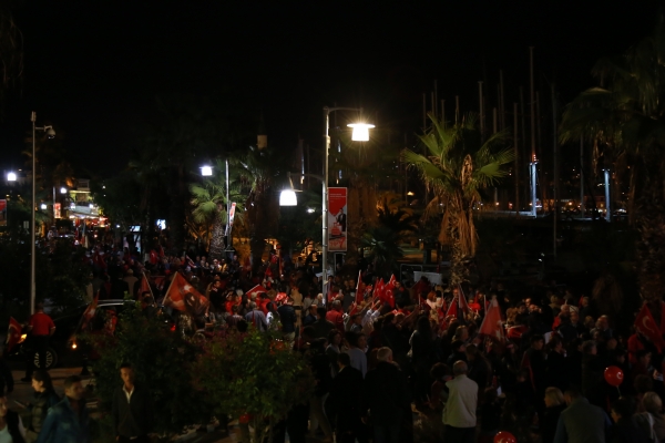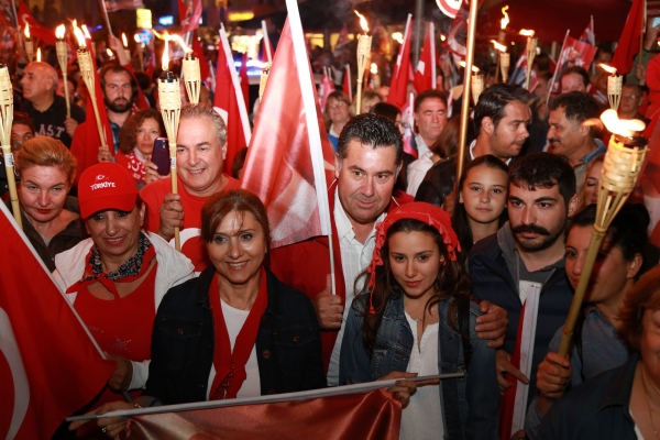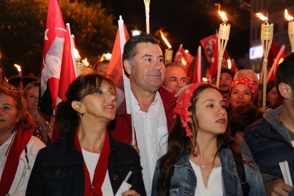 Cumhuriyetimizin 92. yılında, Bodrum Milta Marina önünde toplanan binlerce Bodrumlu ve tatilini Bodrum'da geçirenler, ellerinde meşaleler ve Türk bayraklarıyla Bodrum Belediye Meydanı’na yürüdü. Saat 19.00’da başlayan yürüyüş öncesinde Bodrum Motosiklet Kulübü üyesi motosikletliler, Bodrum Bisiklet Kulübü üyesi bisikletliler ve Bodrum Vosvos Kulübü üyeleri araçlarıyla hareket etti. Araçların hemen ardından bando eşliğinde yürüyüşe geçen Bodrumluların arasında Bodrum Belediye Başkanı Mehmet Kocadon da vardı. Fener alayında Başkan Kocadon'a eşi Hülya Kocadon ve kızı İpek Kocadon ile Bodrum Belediye Başkan Yardımcısı İsmail Altındağ, Bodrum Ticaret Odası Başkanı Mahmut Kocadon ve Bodrum Belediye meclis üyeleri eşlik etti. Binlerce kişi marşlar, meşaleler ve sloganlar eşliğinde Bodrum Belediye Meydanı’na coşkuyla yürürken, atılan havai fişekler de fener alayına renk kattı.