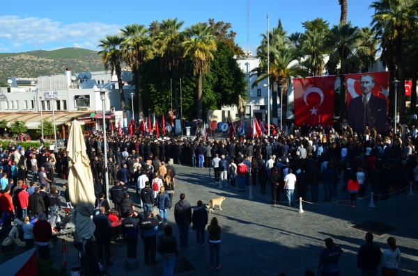 Ulu Önder Mustafa Kemal Atatürk'ün aramızdan ayrılışının 77. yıl dönümü nedeniyle tüm yurtta anma törenleri düzenlendi. Bodrum Belediye Meydanı'nda da düzenlenen anma törenine, Bodrum Kaymakamı Dr. Mehmet Gödekmerdan, Bodrum Belediye Başkan Vekili Mehmet Özalın, Bodrum Garnizon Komutanı Albay Göksel Oral, Bodrum Cumhuriyet Başsavcısı Dr. Barış Duman, Bodrum Belediye Başkan Yardımcıları Taner Uslu ile Kemal Orman, Bodrum Muharip Gaziler Derneği üyeleri, siyasi parti temsilcileri, öğrenciler ve sivil toplum kuruluşu üyelerinin yanı sıra vatandaşlar da katıldı.