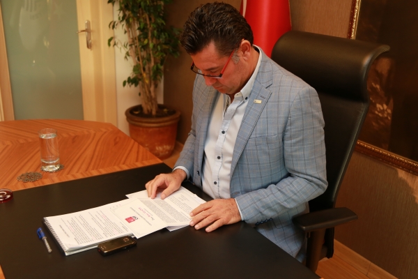 Ardından Bodrum Belediye Başkanı Mehmet Kocadon’a İl Başkanı Alban teşekkür belgesini, İlçe Başkanı Seymen ise teşekkür mektubunu takdim etti. Başkan Mehmet Kocadon da il ve ilçe başkanına teşekkür ederek çalışmalarında başarılar diledi.