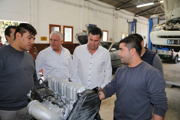 Beraberindekilerle birlikte Umurça Mahallesi’nde bulunan Bodrum Belediyesi Kademesinde incelemelerde bulunan Başkan Mehmet Kocadon, Bodrum Belediyesi Destek Hizmetleri Müdürü Serdar Kaya ve Atölyeler Sorumlusu Ergün Doğan'dan bilgiler alarak kademeyi gezdi ve yapılan işleri yerinde inceledi. Başkan ilk olarak elektrik atölyelerini, ardından marangozhaneleri ziyaret etti. Kaporta, boya, motor tamir, oto lastik tamir, demir doğrama atölyesi ve araç yıkama ve bakım atölyelerini inceleyen Başkan Kocadon, ziyareti süresince personelle de bol bol sohbet etti.