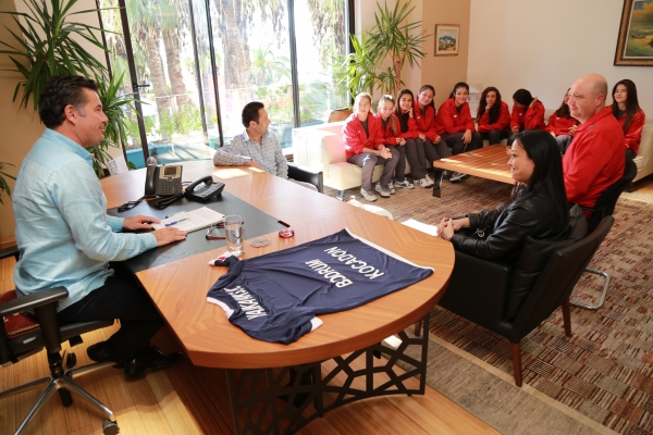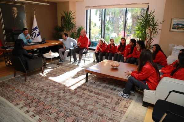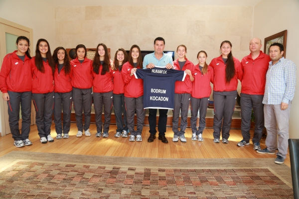 Yalıkavak Spor Kulübü Kız Hentbol Takımı’nın yöneticileri ve sporcuları, Bodrum Belediye Başkanı Mehmet Kocadon’u ziyaret ederek takıma vermiş olduğu destekler için kendisine teşekkür etti.