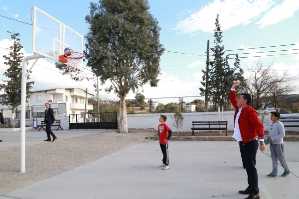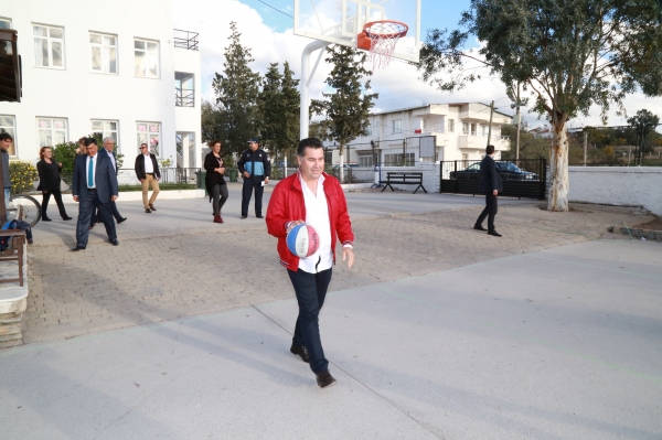 Başkan, bir araya geldiği öğrencilerle de bahçede basketbol oynadı. “Çocuklarımızın yüzlerindeki bu mutluluğu görmek benim için en büyük sevinçlerden biridir” diyen Bodrum Belediye Başkanı, “Çocuklarımızın başarılı, mutlu ve sağlıklı büyümeleri için kaliteli eğitimin yanı sıra spor alışkanlığının da bulunması gerekir. Sağlıklı bir gelecek için gençlerimizi spor yapmaya teşvik etmeliyiz” şeklinde konuştu.
