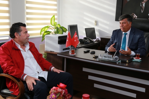 Bodrum Belediye Başkanı Mehmet Kocadon'a ziyaretinde, Bodrum Belediye Başkan Yardımcısı İsmail Altındağ, Basın-Yayın Halkla İlişkiler Müdürü Ummahan Yurt, Kültür ve Sosyal İşler Müdürü Gülizar Akbay, Kültür ve Sosyal İşler Müdürlüğü Sosyal İşler Koordinatörü Mükerrem Uyar ile 5. Bölge Sorumlusu Zafer Yurt da eşlik etti.