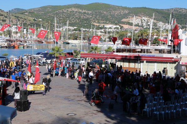 Belediye Meydanındaki törenin ardından İskele Meydanına geçilerek etkinliklere devam edildi. Yahşi Özel Eğitim Uygulama ve İş Uygulama Merkezi öğrencilerinden Hediye Naz Koca’nın “Çocuk” isimli şiiri okumasıyla başlayan program, Sağlık Vakfı Begonvil Özel Eğitim ve Rehabilitasyon Merkezi Engelsiz Müzik Atölyesi öğrencilerinin ritim ve şarkı gösterisiyle devam etti. Umurca İlkokulu öğrencileri, “Atam” adlı şarkıyla dans gösterisi sunarken, Profilo Marina İlkokulu öğrencisi Baran İlkan ise “Çocuk” isimli şiiri okudu.