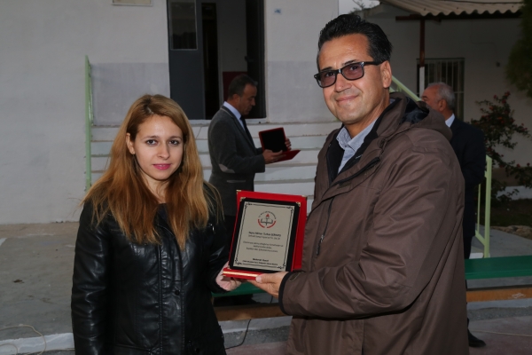 Çiftlik Mustafa Yazıcı İlkokulu ve Ortaokulu tarafından Bodrum Belediye Başkanı Mehmet Kocadon, Bodrum Belediye Başkan Yardımcısı İsmail Atındağ ile Mimar Turhan Serhatlı’ya ve Mustafa Birol’a okul bahçe düzenlemesinin yapılmasına verdikleri destek ve katkılardan dolayı teşekkür plaketi verildi. Açılış kurdelesinin kesilmesinin ardından Başkan Kocadon, yeni sahada birkaç atış denemesi yapmayı da ihmal etmedi.