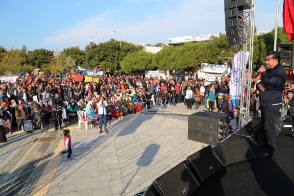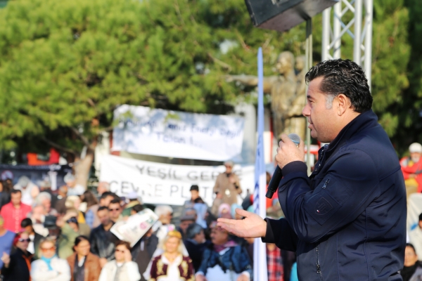 Birçok katılımcının konuşma yaptığı etkinlikte çevrecilere ve vatandaşlara seslenen Bodrum Belediye Başkanı Mehmet Kocadon, rüzgar enerjisine değil, yerine karşı olduklarını söyledi. Başkan Kocadon yaşanan süreçten bahsederek, "Bizler Bodrum'u kolay yaratmadık. Sürgün yerinden marka şehir haline getirdik. Dünyada gittiğimiz yerlerde 'Bodrum'a nasıl geliriz?' diye soranlar oluyor. Bunları yaratan hep sizlersiniz. Bu güzellikler sizin eseriniz. Zaman zaman Bodrum'un yeşil mandalinalarını beyaz evlere kaptırdık ama artık kaptıracak bir şeyimiz yok, kimse kusura bakmasın. Bu yüzden mücadeleyi her zaman sürdüreceğiz. 2014'te önüme bu dosya geldiğinde tereddütsüz ret cevabı verdim. Bırakın zararını ziyanını, gasp edilmeyi; Bodrum'u Bodrum yapan kentsel kimliği var. Bir şehrin kentsel kimliğini bozmak bu kadar kolay mı? Her yerde turizm başlayıp bina boyları yükseliyorken, Bodrum'da sadece turizm yükseldi. Bina boyları yükselmedi. Bu halkı yatırımcıyla karşı karşıya getiriyorlar. Bizim suçumuz medeni olmak ve medeni çerçeveler içinde hakkımızı aramak mı? Biz hakkımızı her zaman medeni çerçeveler içerisinde arayacağız. Hakkımızı aradık ve ilk raundu da kazandı ama bu daha başlangıç. Bırakmayacaklar peşimizi, bırakmayacaklar bu dağlarımızı. Bu yüzden sergilediğiniz bu birlik beraberliğinizde her zaman yanınızda olacağımıza bir Bodrumlu olarak, Bodrum sevdalısı olarak söz veriyorum ve bu mücadelede sizlerle beraber olmaktan mutlu olduğumu belirtmek istiyorum." dedi.