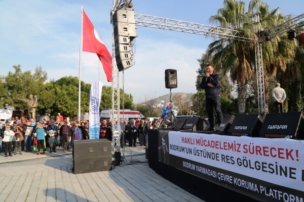 Bodrum Belediyesi'nin destekleriyle Bodrum Yarımadası Çevre Platformu tarafından Yalıkavak Atatürk Meydanı'nda RES eylemi düzenlendi.
