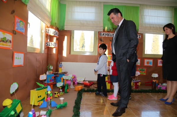 Bodrum Belediye Başkanı Mehmet Kocadon, Özel Turgutreis Marmara Anaokulu öğrencileri tarafından hazırlanan “Atık ve Geri Dönüşüm Malzemelerinden Yapılan İcatlar Projeleri” adlı serginin açılışına katıldı.