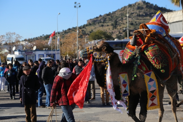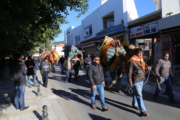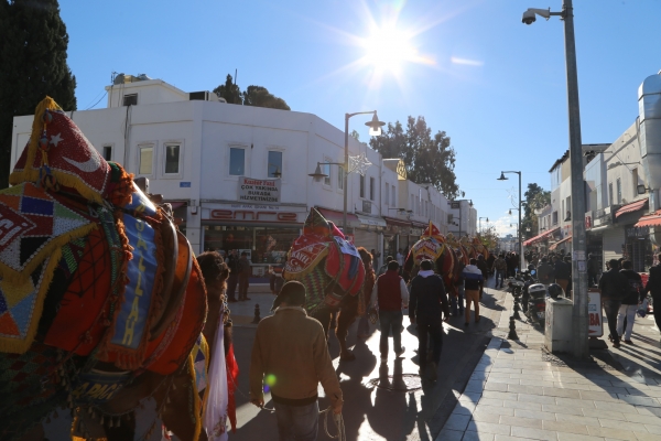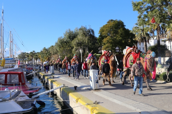 Pazar günü Kızılağaç Deve Güreşi Arenası'nda düzenlenecek olan “Bodrum Deve Güreşi Festivali” öncesinde Bodrum ilçe merkezi, develerin kortej yürüyüşüne sahne oldu.