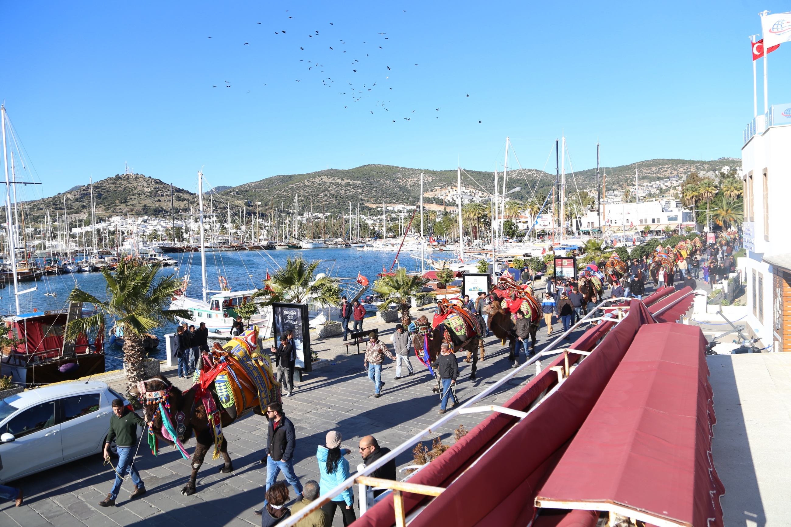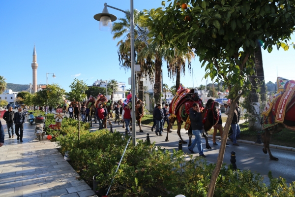 Marina’daki yürüyüşlerinin ardından Belediye Meydanı'na geçen develer daha sonra Turgutreis Caddesi’nden turlayarak Bodrum Otogarı'na geri döndü.