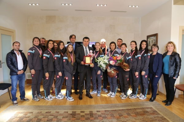 Halil İbrahim İper Anadolu Lisesi Müdürü ve Okul Aile Birliği Başkanı, hentbol Türkiye finallerine hazırlanan okulun başarılı kız hentbol takımı ile birlikte Başkan Mehmet Kocadon’u ziyaret ederek destekleri için teşekkür etti.