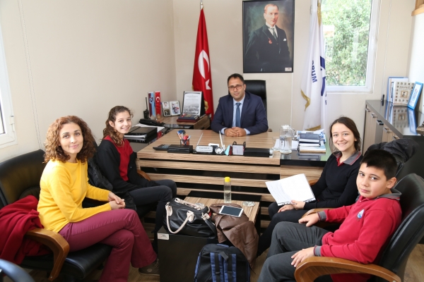 Bodrum Toplum Sağlığı Merkezi ve İlçe Milli Eğitim Müdürlüğü’nün ortak yürüttüğü "Ortaokul ve Lise Öğrencilerini Çevre Konusunda Bilinçlendirme Projesi"ne hazırlanan 8. sınıf öğrencilerinden Pembegül Akyurt, İhsan Alp Çınar ve Aysun Tengiz, Merkez Turgutreis Ortaokulu Fen ve Teknoloji Öğretmeni Ebru Çağlar ile birlikte çevre kirliliği hakkında bilgi almak için Bodrum Belediyesi Çevre Koruma ve Kontrol Müdürlüğü’nü ziyaret etti. Bodrum Belediyesi’nin geri dönüşüm ve katı atıklar ile ilgili yaptığı projeleri öğrenmeyi amaçlayan gençler, aynı zamanda Bodrum’da yaşayan vatandaşların bu konu hakkında bilinçlendirilmesini sağlamak için neler yapılabileceği bilgisini de aldı. Müdürlüğü ziyaret eden gençler, Bodrum Belediyesi Çevre Koruma ve Kontrol Müdürü Engin Doğan ile gerçekleştirdikleri röportajda merak ettikleri konular hakkında gerekli bilgileri not aldılar.