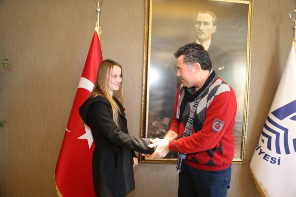 Hüseyin Turgut Karabağlı Ortaokulu 8. sınıf öğrencisi Ela Kazoğlu, TEOG sınavında aldığı üstün başarısının ardından Hüseyin Turgut Karabağlı Ortaokulu Müdürü Erkan Güngör, annesi Kristy Kazoğlu ve iki kardeşiyle birlikte Bodrum Belediye Başkanı Mehmet Kocadon’u makamında ziyaret etti. Başkan Kocadon, “Bodrum’un adının güzel bir şekilde duyurulmasını sağladın. Başarılarının devamını dilerim.” diyerek Bodrum ilçe genelinde 120 soruyu cevaplayarak Bodrum’dan çıkan üç Türkiye birincisinden biri olan öğrenci Ela Kazoğlu’nu ödüllendirdi.