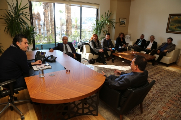 Bodrum Belediyesi tarafından Bodrum Ticaret Odası’nda düzenlenen “Bodrum Mandalinasının Üretimi ve Pazarlanması” konulu panel öncesinde konuşmacı ve katılımcılar, Bodrum Belediye Başkanı Mehmet Kocadon’u ziyaret etti.
