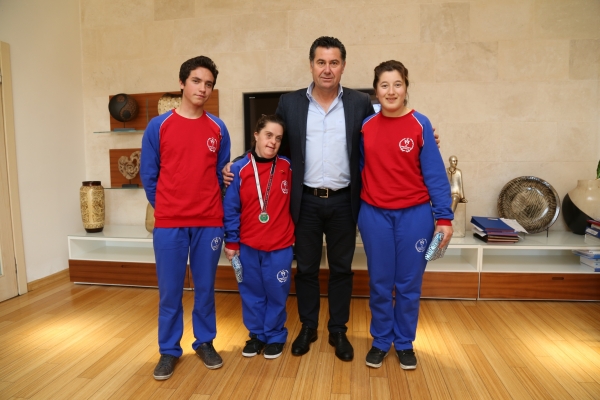 Türkiye Özel Sporcular Spor Federasyonu’nun 2016 yılı faaliyet programında yerini alan, 13 – 15 Şubat tarihleri arasında Antalya’nın Alanya ilçesinde gerçekleşen “1. Bölge (Ege, Marmara ve Akdeniz) Yüzme Şampiyonası” hakkında Başkan Kocadon’a bilgi veren okul müdürü Mehmet Çoban, “Şampiyonaya üç sporcumuzla katıldık. Sporcularımızdan Down sendromlu Zeynep Elhan Yazıcı, 50 metre sırtüstü stilinde bölge ikinciliği gibi önemli bir başarıyı elde ederek Türkiye Şampiyonası’na katılmaya hak kazandı. 50 metre serbest stilde ise Ömer Cenk Malseven 48 sporcu arasından altıncı, Enise Nur Kılıçarslan da 20 sporcu arasından yedinci sıraya yerleşerek başarılı bir sonuç çıkardı. Belediye başkanı olarak maddi manevi her zaman onların ve bizlerin yanında oluşunuzun da, özellikle öğrencilerimizin başarısında büyük payı var. Destekleriniz için tekrar teşekkür ediyoruz.” dedi.