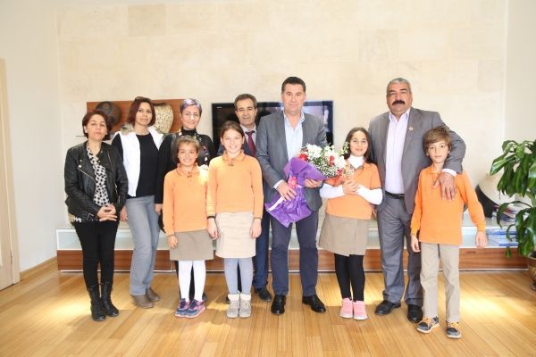 Göltürkbükü Mahalle Muhtarı Musa Göze, Türkbükü Şehit Gaffur Kaynar İlkokulu Müdürü Muzaffer Çakmak, okul aile birliği üyeleri ve öğrenciler, Bodrum Belediye Başkanı Mehmet Kocadon'u makamında ziyaret etti.