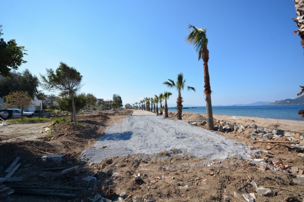 Bodrum Belediyesi Fen İşleri, Park ve Bahçeler ile Destek Hizmetleri Müdürlüğünün ortaklaşa olarak hazırlamış olduğu, Turgutreis Mahallesi Şevket Sabancı Caddesi Beşinci Kısım sahil yolu yapım çalışmaları sürüyor.