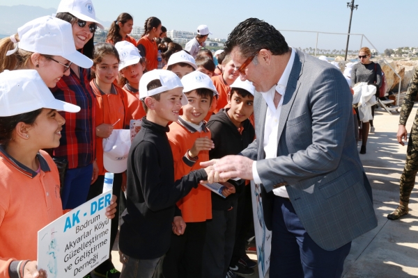 Toplumda çevre bilincinin artırılmasını sağlamak amacıyla düzenlenen Bodrum deniz dibi temizliği etkinliğine Akyarlar Hacı Mahmut Tınaztepe İlkokulu ve Ortaokulu’nun 4 sınıfından 80 öğrenci, ortaokul müdürü Ferhat Tutucu ve ilkokul müdürü Bülent Ayaydın ile katıldı. Bodrum Belediyesi Çevre Koruma ve Kontrol Müdürlüğünde görevli çevre mühendisi Ahmet Acar, öğrencilere, sergilenen atıkların geri dönüşüm süreleri hakkında bilgi vererek öğrencileri çevreye karşı duyarlı olunması gerektiği konusunda bilinçlendirdi.