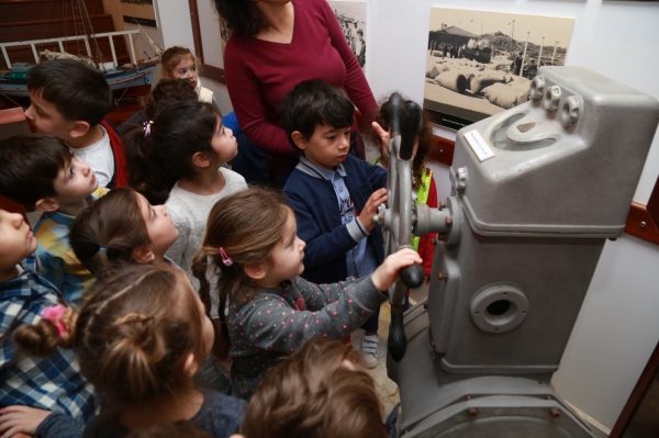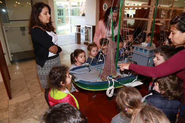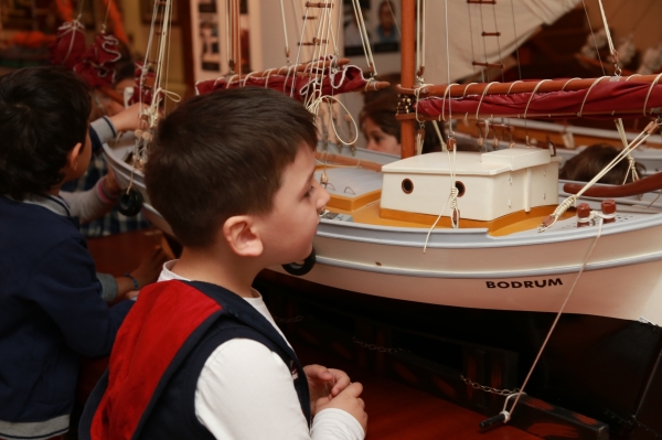 Minik öğrenciler ziyarette ayrıca meraklı gözlerle eski teknelerin maketlerini de incelediler.
