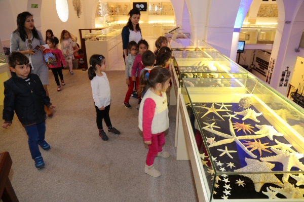 Deniz Müzesi’nin ikinci katında bulunan "Hasan Güleşçi Deniz Kabukları Koleksiyonu”nu da gezen miniklerin, birbirinden farklı deniz kabuklarını bir arada görmeleri heyecanlarını daha da artırdı.