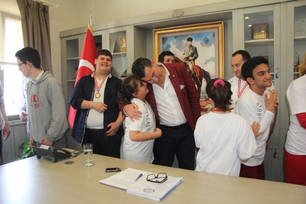 Özel Olimpiyatlar Bölge Oyunları kapsamında B Grup’ta Türkiye 3.’sü olan Bodrum Yahşi Özel Çocuklar Spor Kulübü Karma Basketbol Takımı ile çeşitli branşlarda altın, bronz ve gümüş madalya kazanan özel sporcular, başarılarını Bodrum Belediye Başkanı Mehmet Kocadon ile paylaştı.