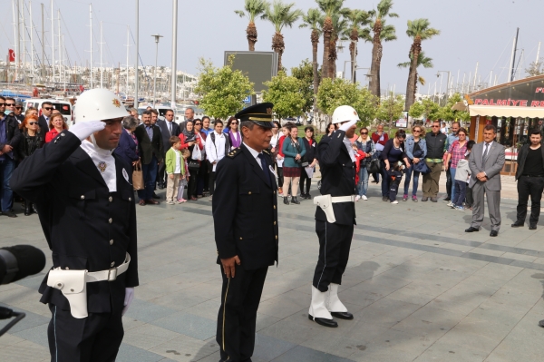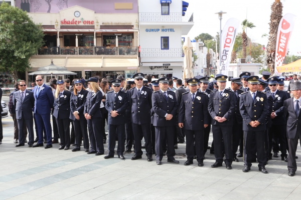 Atatürk Heykeli önünde yapılan kutlamaya Bodrum Kaymakamı Dr. Mehmet Gödekmerdan, Cumhuriyet Başsavcısı vekili Cumhuriyet Savcısı Yavuz Bayram, Bodrum Belediyesi Başkan Yardımcısı Kemal Orman,Bodrum Garnizon Komutanı Albay Atilla Göksel Oral, Bodrum İlçe Emniyet Müdürü Can Candaş, görevli ve emekli polis memurları başta olmak üzere siyasi parti temsilcileri ve sivil toplum kuruluşları temsilcileri katıldı.