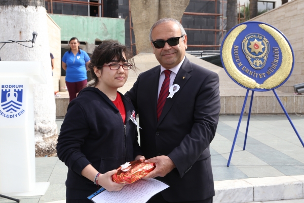 Bodrum İlçe Emniyet Müdürlüğü çelenginin konulması ile başlayan tören saygı duruşu ve İstiklal Marşı'nın okunması ile devam etti. Ardından Polis Haftası etkinlikleri kapsamında ilköğretim okullara bünyesinde düzenlenen kompozisyon, şiir ve resim yarışmalarında dereceye giren öğrencilere hediyeleri verildi.