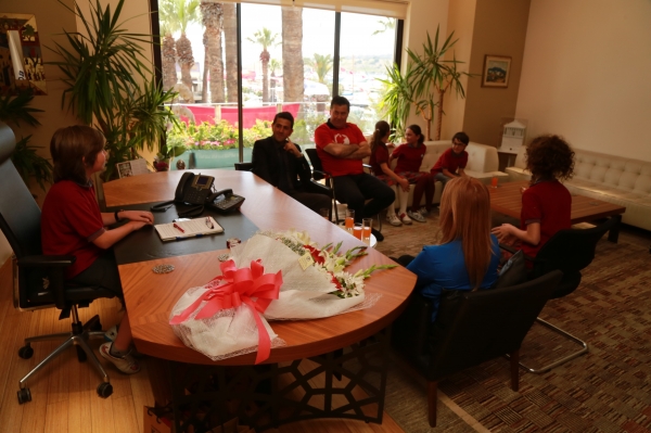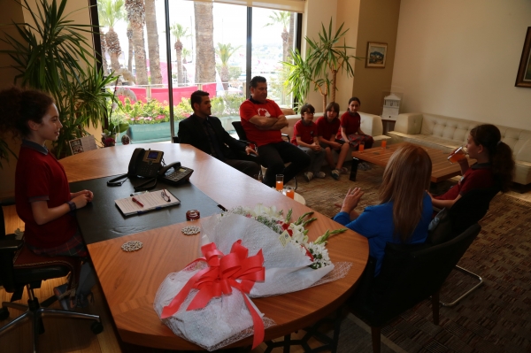 Ziyarette temsili olarak tüm çocuklar teker teker Bodrum Belediye Başkanı Mehmet Kocadon’un makam koltuğuna oturdu. Öğrenciler, “Başkan olsaydın neler yapardın?” soruna da pek çok farklı yanıt verdi.