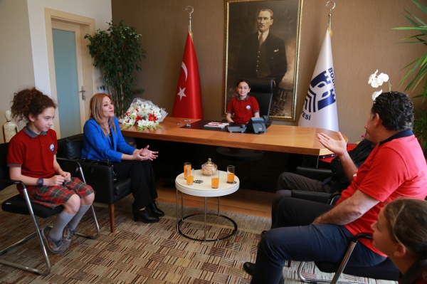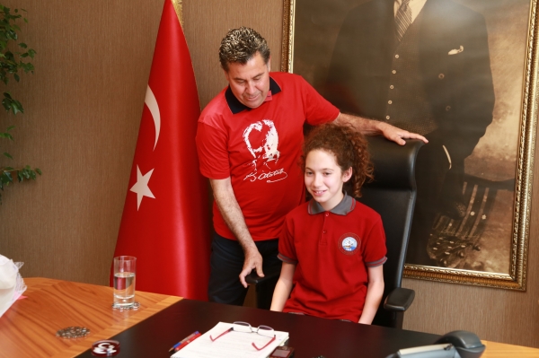 23 Nisan Ulusal Egemenlik ve Çocuk Bayramı kutlamaları kapsamında temsili olarak öğrenciler, Bodrum Belediye Başkanı Mehmet Kocadon’un makamına oturdu.