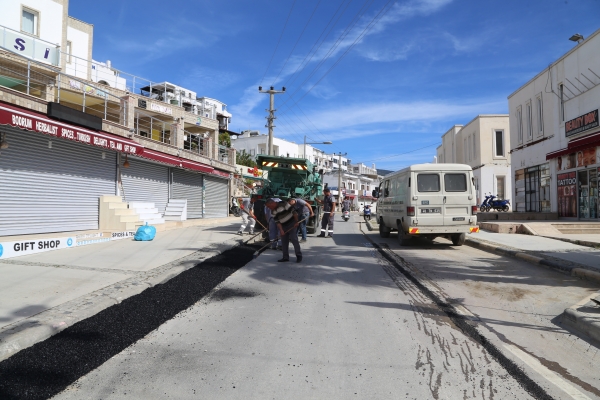 Aydem tarafından gerçekleştirilen elektrik hatlarını yer altına alma çalışmaları sonrası 1.Bölgede bozulan yollar, Bodrum Belediyesi tarafından asfaltlanıyor.