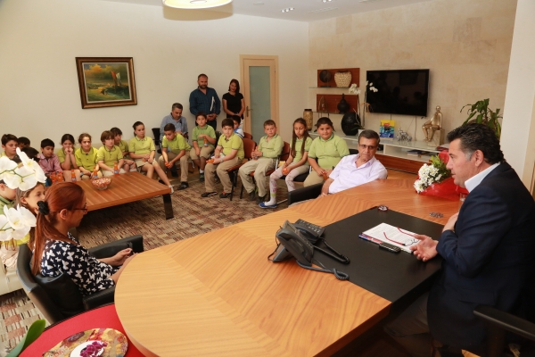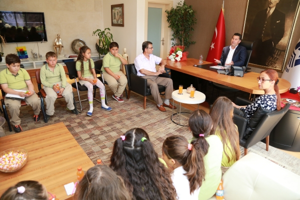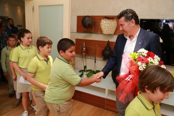 Bodrum Güler-Mustafa Kızılağaç İlkokulu 4/E sınıfı öğrencileri sınıf öğretmenleri Kenan Aktaş ve sınıf annesi Gülşah Erzin ile birlikte Bodrum Belediye Başkanı Mehmet Kocadon’u ziyaret etti.