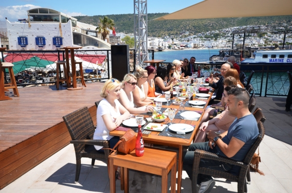 Kültür gezisi sonrası misafirler öğle saatlerinde Bodrum Belediyesi Trafo Bodrum Cafe’de, Bodrum Belediyesinin düzenlediği toplantıya katıldı. Toplantıda Bodrum’un tarihi ve kültürel özelliklerinin yansıtıldığı tanıtım filmi ile çeşitli Bodrum yarımadası manzaralarından oluşan görsellerin slaytla sunumu yapıldı.
