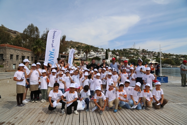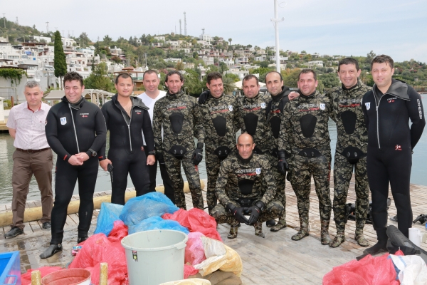 Etkinliğe ayrıca Türkbükü Şehit Gaffur Kaynar İlkokulu öğrencileri de katıldı. Dalgıçlar denizde temizlik yaparken öğrenciler sahili temizledi.