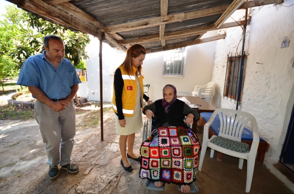 Bodrum’un Bitez Mahallesinde yaşayan ve yürümekte güçlük çeken 72 yaşındaki Esma Eskici isimli vatandaşa Bodrum Belediyesi tarafından tekerlekli sandalye yardımı yapıldı.