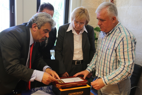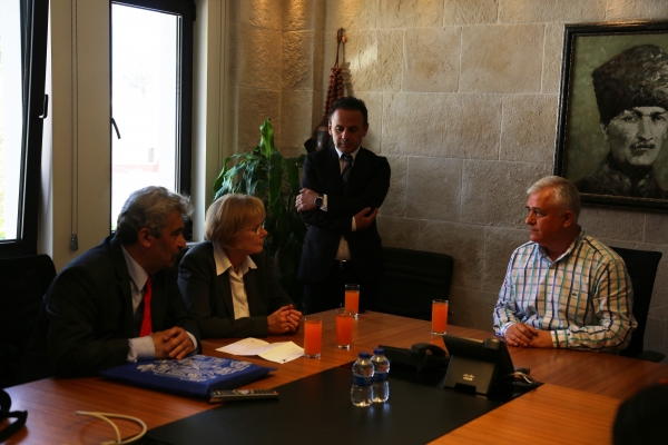 Bodrum Belediye Başkanlığı Toplantı Odası’nda gerçekleşen ziyarette; Almanya’nın Rüsselsheim kentinden Alexander Von Hunbolt okulunun müdürü Renata Pilgenröther, okulun Türkçe öğretmeni ve Rüsselsheim Belediye Meclis Üyesi Murtaza Ak, okul öğretmeni Dorit Walter ve Bodrum’a kardeş okul projesi kapsamında gelen 13 Alman öğrenci yer aldı. Bodrum Belediye Başkan Yardımcısı İsmail Altındağ tarafından karşılanan Alman misafirlere, kardeş okulları olan Bodrum Mesleki ve Teknik Anadolu Lisesi’nin Müdürü Ayşe Avcı Aşçı ile okulun İngilizce öğretmenleri Filiz Bayramoğlu, Ersan Akbulut ve Muazzez Aydın eşlik etti.