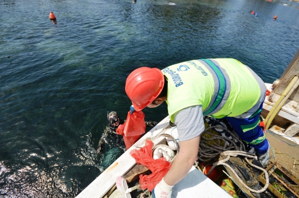 “Denize en çok MAVİ yakışır” sloganıyla Bodrum Belediyesi tarafından bu yıl ikinci kez düzenlenen “Bodrum Deniz Dibi Temizlik Kampanyası” Bodrum Belediyesi Dalış Ekibinde görevli, aynı zamanda belediye personeli olan dalgıçlar yardımıyla aralıksız sürüyor.