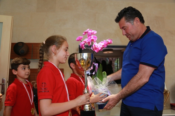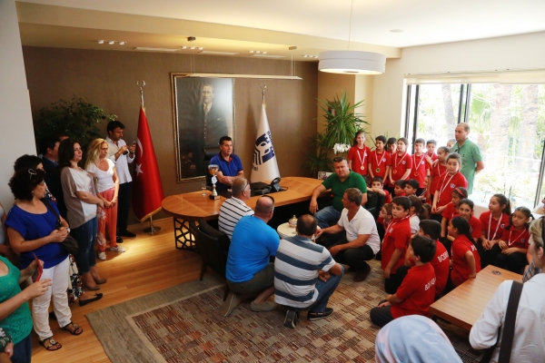 Başkan Kocadon Bodrum’u Türkiye’de en güzel şekilde temsil ettikleri için şampiyonlara teşekkür ederken; “Bizler için önemli olan sağlıklı nesiller yetiştirmek. Ailelerin desteği de çok önemli çünkü sizler inanıyorsunuz, çocuklarınıza inanıyorsunuz, güveniyorsunuz ve onları eğitmenlerine teslim ediyorsunuz. Öğrencilerimiz, ailelerini ve gençleri örnek alarak bu günlere geliyorlar. Bodrum, Türkiye’nin gözünde farklı bir bölge ama ben her zaman söylüyorum: Avrupa’nın ve Dünya’nın çağdaş olduğuna inanan, eğitim düzeyinin yüksek olduğuna inanan, en modern yeri neresiyse gelsin Bodrum’da yarıştıralım. Canlı şahitleri de öğrencilerimiz. Onun için sizlerin özverisi benim için çok önemli. Bugün bu koltukta ben oturuyorum, yarın bekli de bu öğrencilerimizden birisi oturacak. İşte benim görevim buraya modern, Atatürkçü, çağdaş, sağlıklı bir nesil yetiştirmek. Sizler, bizlerin gururu, onurusunuz. Bodrum’u orada en güzel şekilde temsil ettiniz. Hepinizle gurur duyuyorum” dedi.