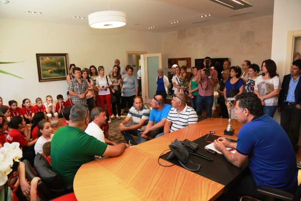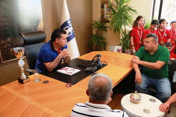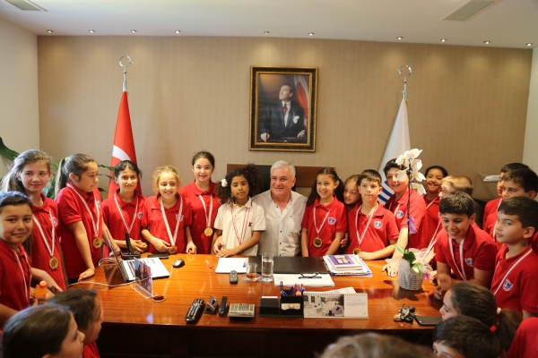 Minikler Geleneksel Düzenlemeli Dal Türkiye Şampiyonasında birinci olan Bodrum Akademi Karya ve Karya Çiçekleri Gençlik Spor Kulübü’nün şampiyon sporcuları, Bodrum Belediye Başkanı Mehmet Kocadon’u ziyaret etti.
