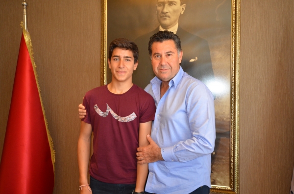 Türkiye’nin en iyi ilk beş yelkencisi arasına girerek Milli Takım Sporcusu olmaya hak kazanan Efe Ağan, Bodrum Belediye Başkanı Mehmet Kocadon’u ziyaret etti.