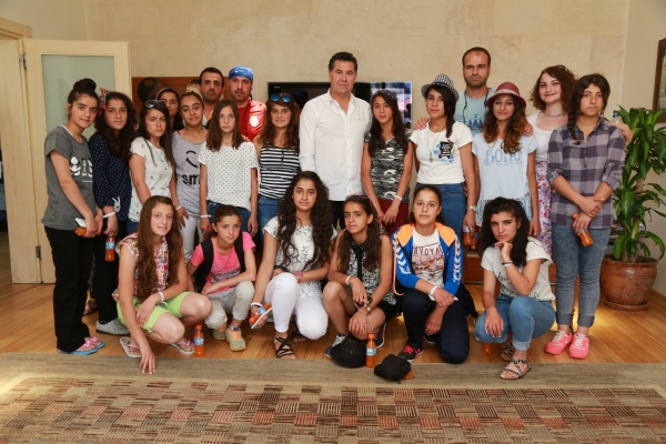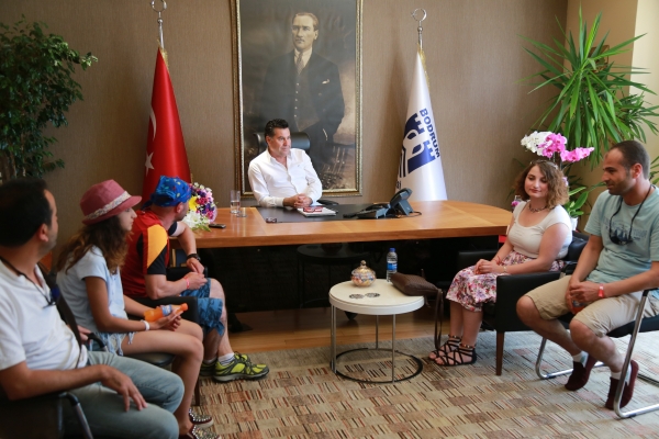 Bodrum Belediye Başkanı Mehmet Kocadon’un davetiyle Bodrum'a gelen Van Mustafa Cengiz Ortaokulu Mor Menekşeler Yıldızlar Kız Futbol Takımı oyuncuları ve yöneticileri Başkan Kocadon’u ziyaret etti.