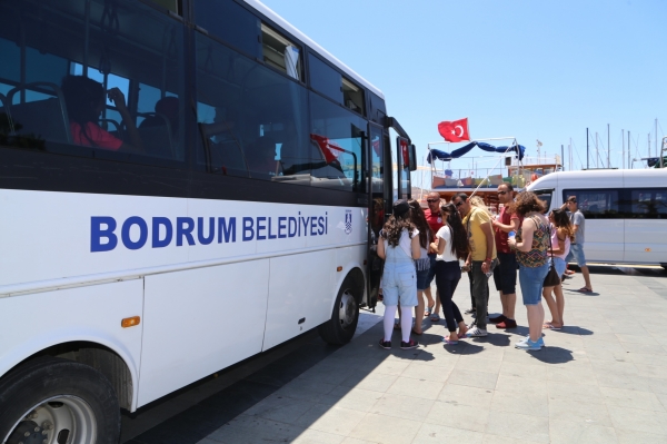 Bodrum Belediyesi Kültür ve Sosyal İşler Müdürlüğü ekiplerinin eşlik ettiği Vanlı kız futbolcular, Bodrum’da hem kamp yaparak antrenmanlarına devam ediyor hem de tatilin, denizin ve güneşin tadını çıkarıyor. Ortaokul 7’nci ve 8’nci sınıf öğrencilerinden oluşan yıldızlar kız futbol takımının 18 öğrencisi, ilk gün Bodrum Kalesi ve Sualtı Arkeoloji Müzesini, Halikarnas Mozolesini, Bodrum Deniz Müzesini ve Zeki Müren Müzesini gezdi. Grup, aynı gün öğleden sonra ise konaklayacakları Müskebi Club oteline dönerek denizin ve havuzun keyfini çıkardı. Akşam saatlerinde ise önümüzdeki hafta Van’da başlayacak olan maçlara hazırlık için oteldeki futbol sahasında antrenman maçı yaptı. Bir sonraki gün de Bodrum Belediye Başkanı Mehmet Kocadon’a yaptıkları ziyaretin ardından yarımada turuna katıldı. Grup kaldıkları süre içinde Bodrum guletiyle tekne turuna da çıkarak Bodrum’un turkuaz mavisi koylarını keşfedecek.