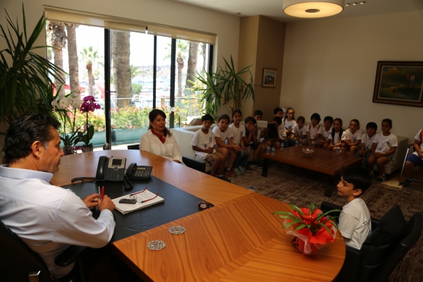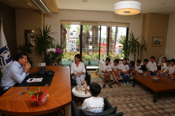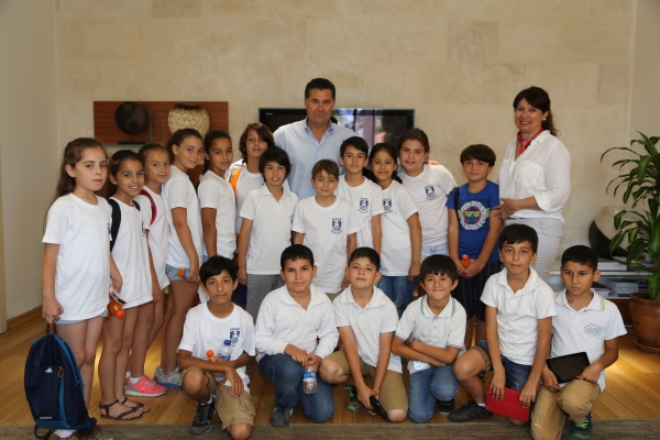 Umurca İlkokulu 4/A sınıfı öğrencileri, sınıf öğretmenleri Hülya Erkıral ile birlikte Bodrum Belediye Başkanı Mehmet Kocadon’u makamında ziyaret etti.