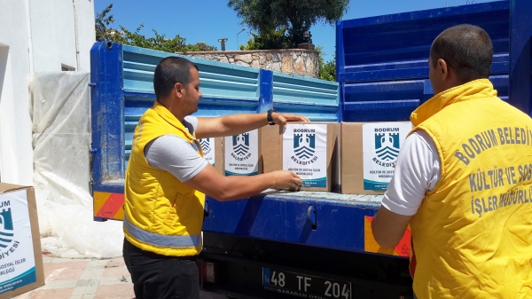 Bodrum Belediyesi, ilçe genelindeki ihtiyaç sahibi ailelere her yıl olduğu gibi bu Ramazan ayı içinde de erzak yardımında bulunuyor.