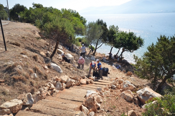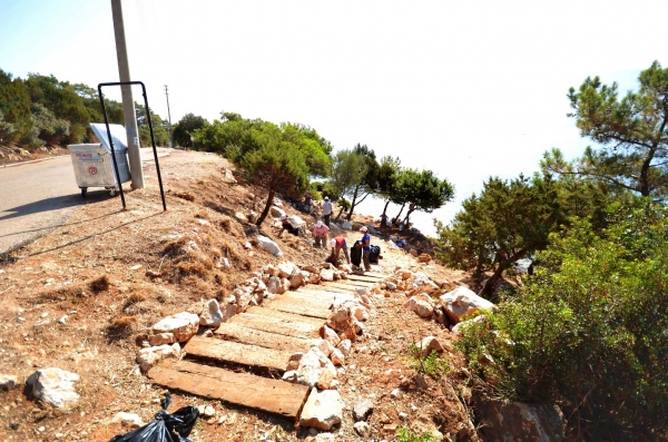 Park ve Bahçeler ekipleri ayrıca vatandaşların sahile kolay ulaşımlarını sağlamak amacıyla da Fen İşleri ekipleri ile işbirliği içinde, doğayla uyumlu ve doğaya herhangi bir zararı dokunmayacak nitelikteki sökülüp takılabilen (demonte) ahşap merdivenlerin kurulumunu yaptı.