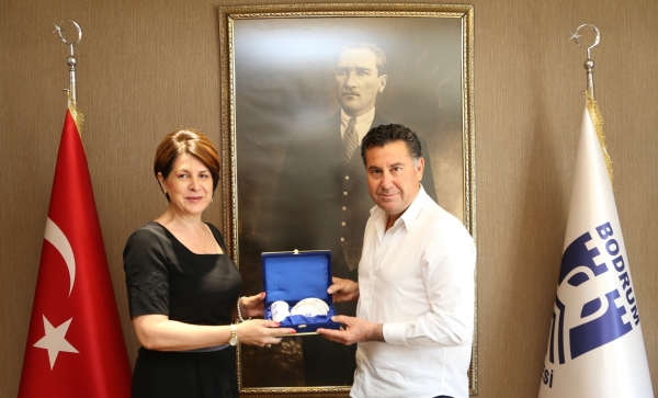 Romanya İzmir Başkonsolosu Mioara Ştefan, Bodrum Belediye Başkanı Mehmet Kocadon'u makamında ziyaret etti.