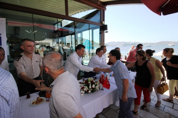 Bodrum Belediye AŞ Mahfel Cafe'de düzenlenen bayramlaşma törenine Bodrum Kaymakamı Dr. Mehmet Gödekmerdan, Garnizon Komutanı Albay Göksel Oral, Bodrum Belediye Başkanı Mehmet Kocadon, Bodrum İlçe Jandarma Komutanı Binbaşı Ömer Faruk Karaşahin, Bodrum İlçe Emniyet Müdürü Can Candaş, TCSG 1 No.lu Bot Komutanı SG. Seyir Başçavuş Hakan Yürür, Bodrum Belediye Başkan Yardımcısı Kemal Orman, Bodrum Ticaret Odası Başkanı Mahmut Kocadon, Bodrum Esnaf ve Sanatkarlar Odası Başkanı Erdoğan Başeymez, Bodrum Şoförler ve Otomobilciler Esnaf Odası Başkanı Hasan Kablı, Bodrum Belediyesi Meclis Üyeleri, ilçedeki siyasi parti temsilcileri ve sivil toplum kuruluşu yöneticileri ile vatandaşlar katıldı.