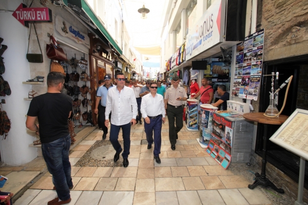 Törenin ardından ise protokol üyeleri; Bodrum Muharip Gaziler Derneği, Jandarma Komutanlığı, İtfaiye Müdürlüğü ve Bodrum İlçe Emniyet Müdürlüğü, Bölge Trafik Müdürlüğü, Güvercinlik ve Torba’da bulunan uygulama noktalarında görev yapan emniyet güçleriyle bayramlaştı. Uygulama noktalarına yapılan ziyarette konuşma yapan Bodrum Belediye Başkanı Mehmet Kocadon şunları söyledi: