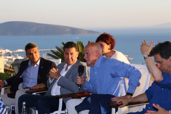 Bodrum’da bulunmaktan son derece mutlu olduğunu belirten George Papandreou ise mültecilerin yaşadığı sıkıntıları ve dünyada süregelen diğer problemleri aşabilmek için birlik ve beraberliğin önemine dikkat çekti. Gazetecilerin sorularını da yanıtlayan Papandreou, Türkiye ile ilişkilerin geliştirilmesi gerektiğini, Türkiye'ye hep destek olduklarını ve olmaya devam edeceklerini; terör saldırıları karşısında ise Türkiye'nin yanında olduklarını belirterek birlik ve beraberlik çağrısında bulundu.